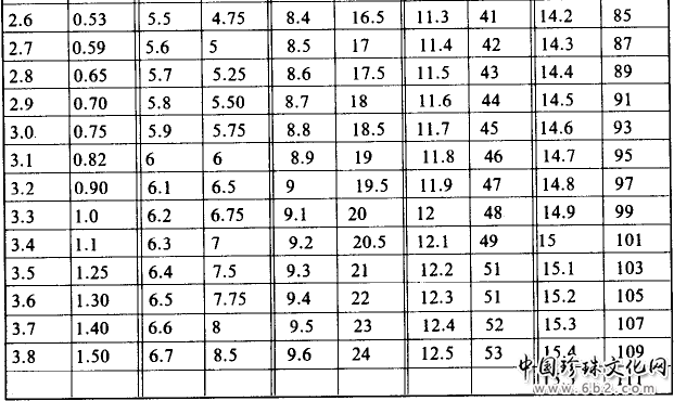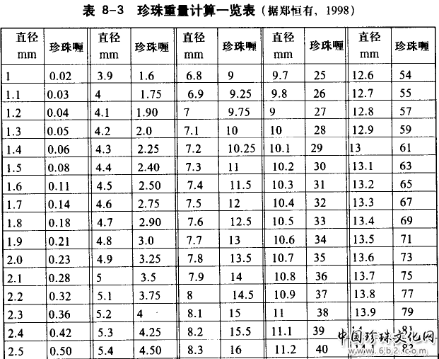 一些球形珍珠,其质最(重)和其大小(尺寸)之间常常有很好的对应关系(表8-3)。